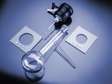 為提高該儀器的易用性,并使操作員獲得完美體驗(yàn),蒸發(fā)溫度傳感器搭配了燒瓶定位支架。多功能蒸餾瓶塞具有兩種可選類型:堅(jiān)實(shí)的金屬材質(zhì)溫度傳感器或玻璃材質(zhì)的傳感器。只用一只手就可在幾秒內(nèi)將蒸餾燒瓶(125 mL 或 200 mL)安裝到正確的位置。