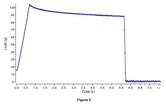 圖2:顯示了測試過程中,負(fù)載與時間的關(guān)系。