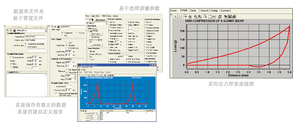 -例如彈性、咀嚼性、硬度等諸多參數(shù),可通過內(nèi)嵌的參數(shù)計算模型來進行高級數(shù)據(jù)分析。
