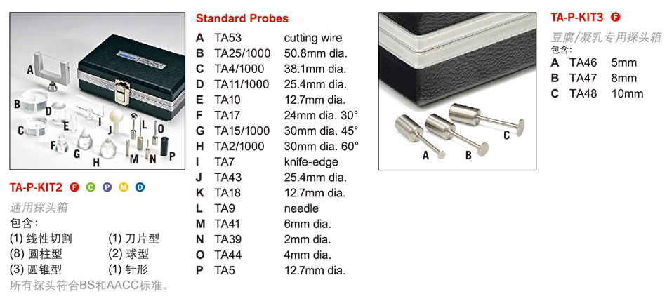 探頭和夾具:CT3質(zhì)構(gòu)儀配備有非常齊全的測試配件、夾具以及探頭,可滿足您全方位的測試要求