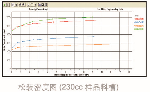 。通常而言,自由流動(dòng)粉體在固結(jié)壓力增加時(shí)會(huì)顯示密度的變化相對(duì)很小,而粘結(jié)性粉體的密度則有很大改變。